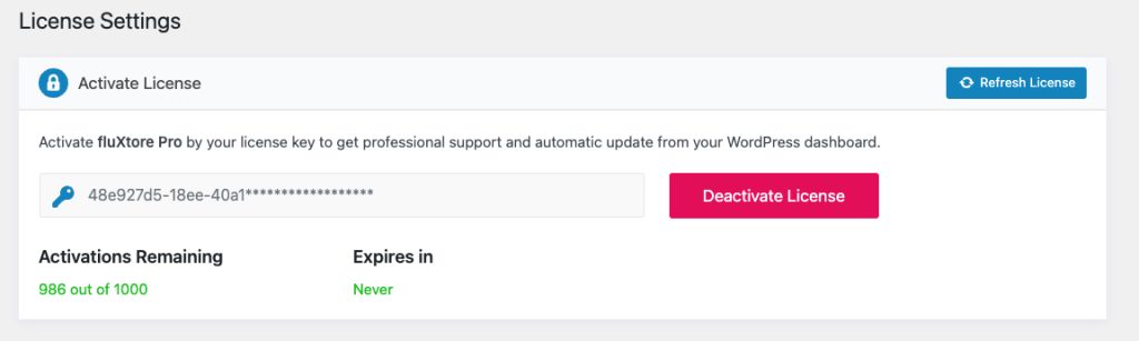1. If additional codes are added to your account, the number of licenses available can be viewed within the License Management section of the Fluxtore plugin.